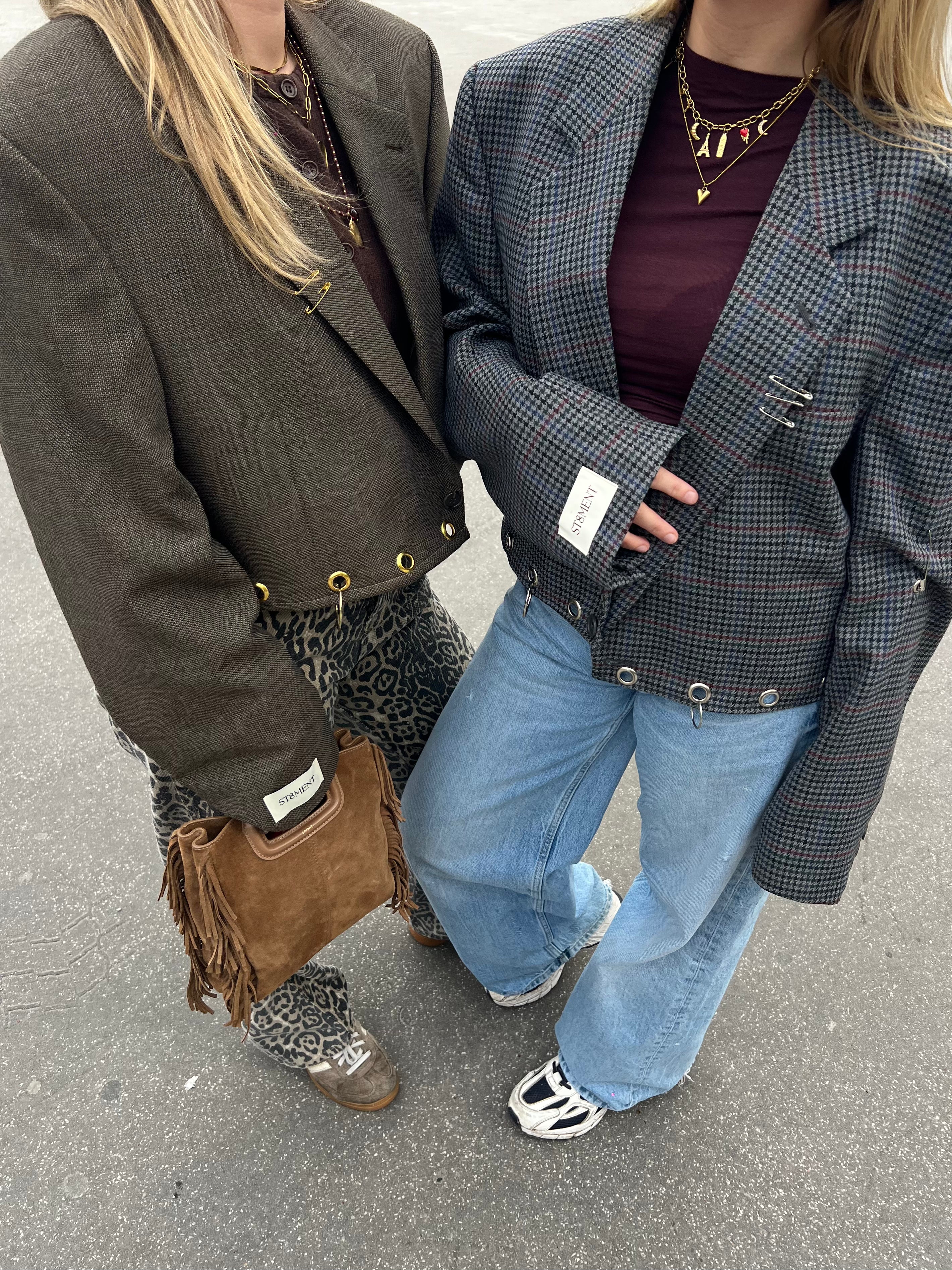 Blazers with a story. ST8MENT is ontstaan uit de gedeelde passie van Fey en Jasmijn voor mode en creativiteit. Tijdloze vintage blazers worden omgetoverd tot unieke statement pieces, ontworpen voor de vrouw die zich krachtig, stijlvol en zelfverzekerd wil voelen, elke dag, op haar eigen manier.